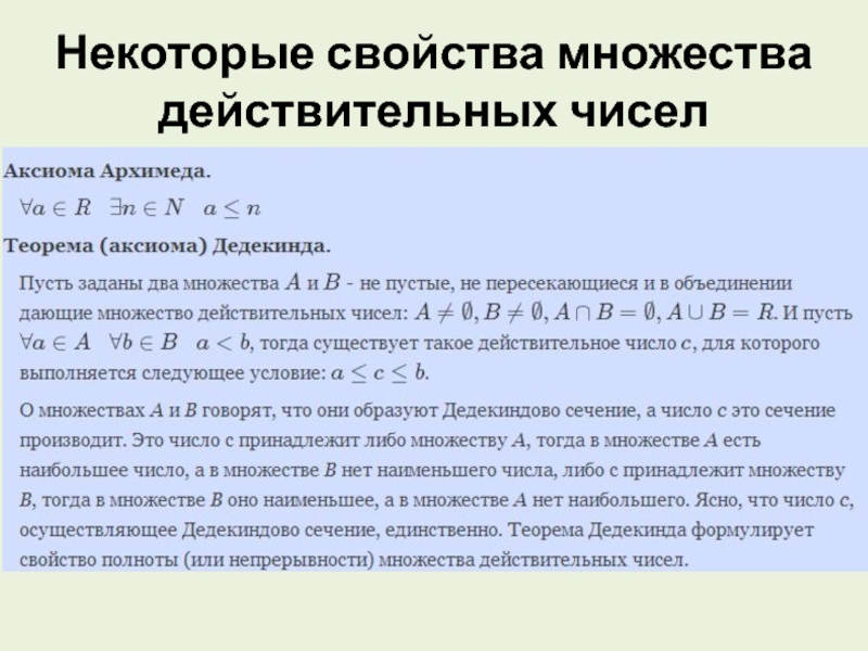 Слайд 7Для приложений к множеству действительных чисел присоединяют два символа: −∞, +∞. Эти символы