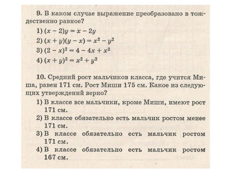 Презентация, доклад на тему 7 класс Математика Подготовка к тестированию МЦКО