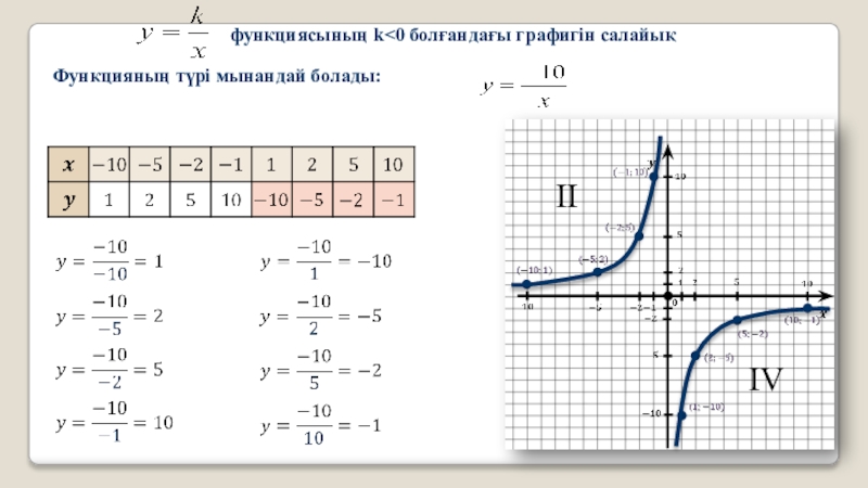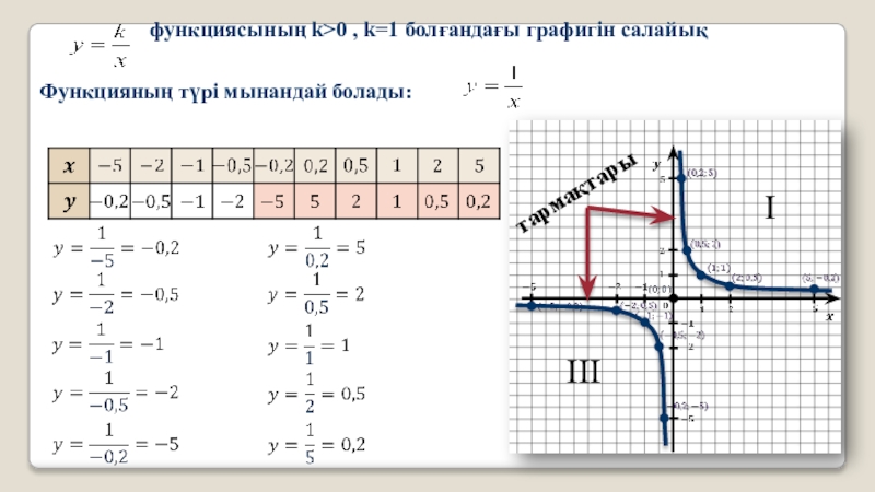 Кері пропорционалдық функцияның анықталу облысы –нөлден өзге барлық сандар жиыны,басқаша айтқанда х-тің мүмкін болатын мәндері.