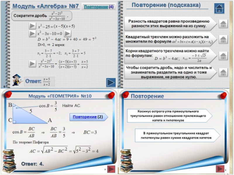 - во второй части, где требуется решить геометрическую задачу с доказательством,