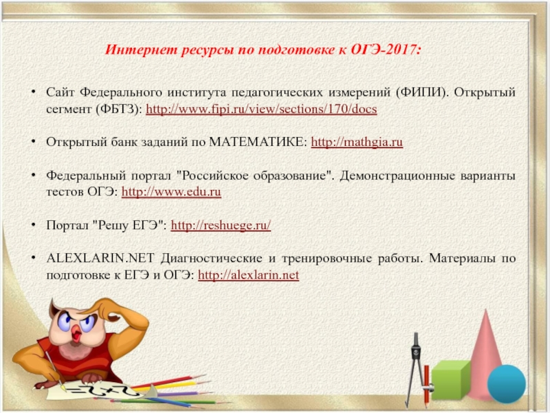 Интернет ресурсы по подготовке к ОГЭ-2017:
