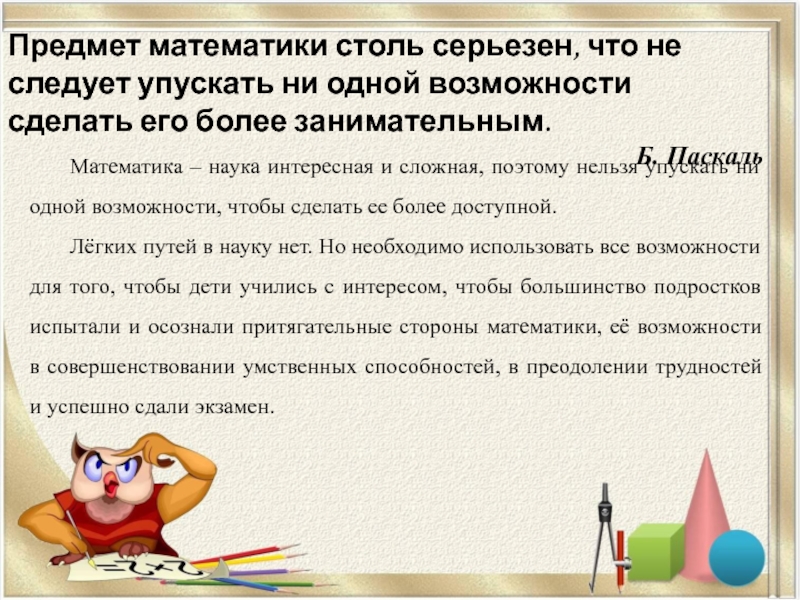 Предмет математики столь серьезен, что не следует упускать ни одной возможности сделать его более занимательным.