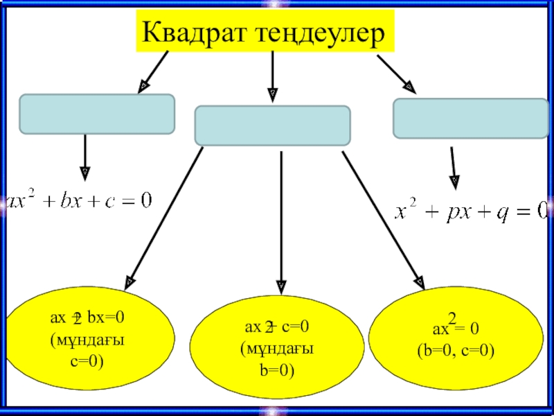 Квадрат теңдеулерax + bx=0(мұндағы с=0)ax + c=0(мұндағы b=0)ax = 0(b=0, c=0)222
