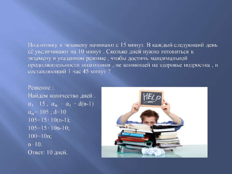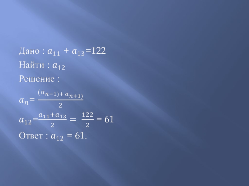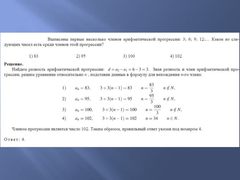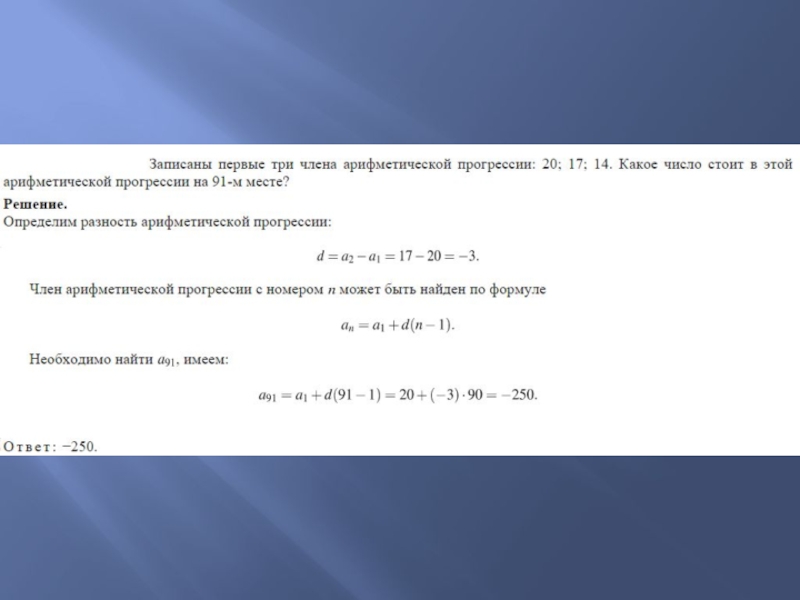 Слайд 12Выписано несколько последовательных членов арифметической прогрессии : …; -9 ; x
