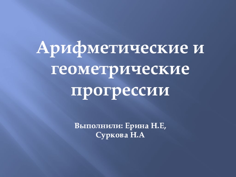 Арифметические и геометрические прогрессииВыполнили: Ерина Н.Е, Суркова Н.А