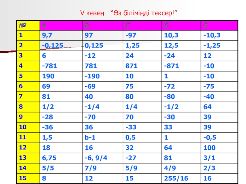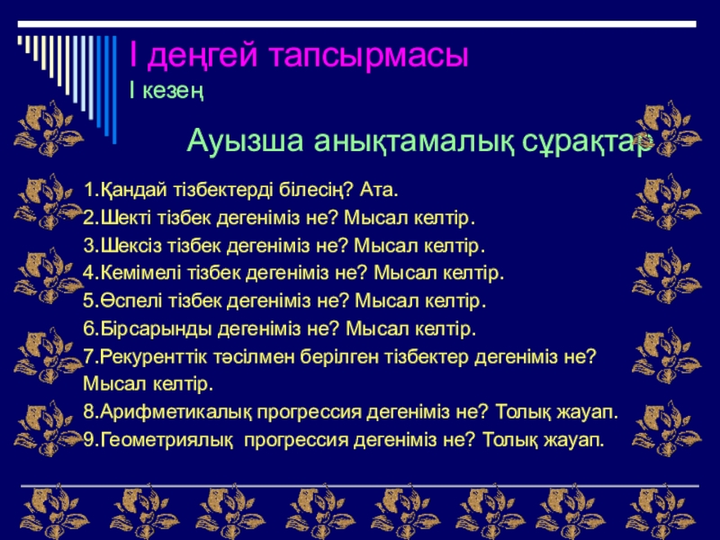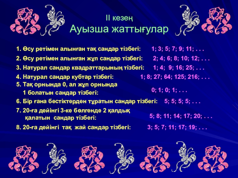 6. Бір ғана бестіктерден тұратын сандар тізбегі: