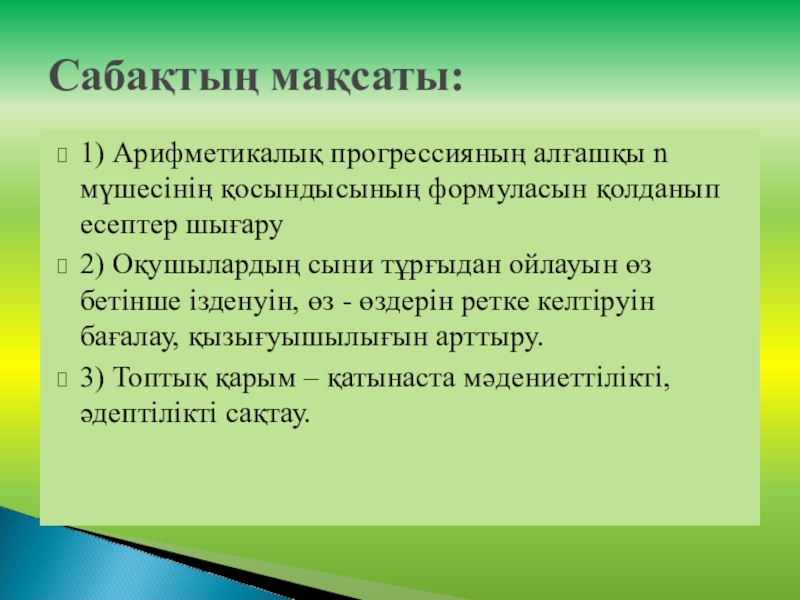 Арифметикалық прогрессияның алғашқы n мүшесінің қосындысы