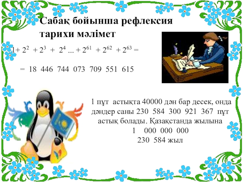 1 пұт астықта 40000 дән бар десек, онда дәндер саны 230 584 300 921 367 пұт астық болады. Қазақстанда жылына