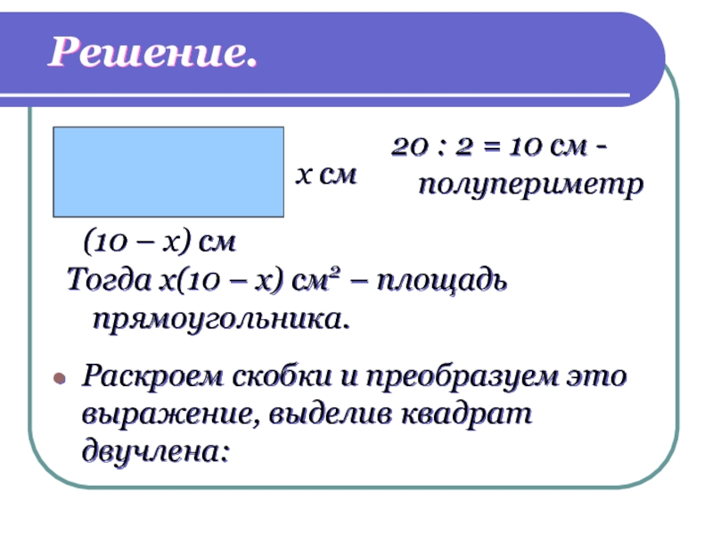 Раскроем скобки и преобразуем это выражение, выделив квадрат двучлена:
