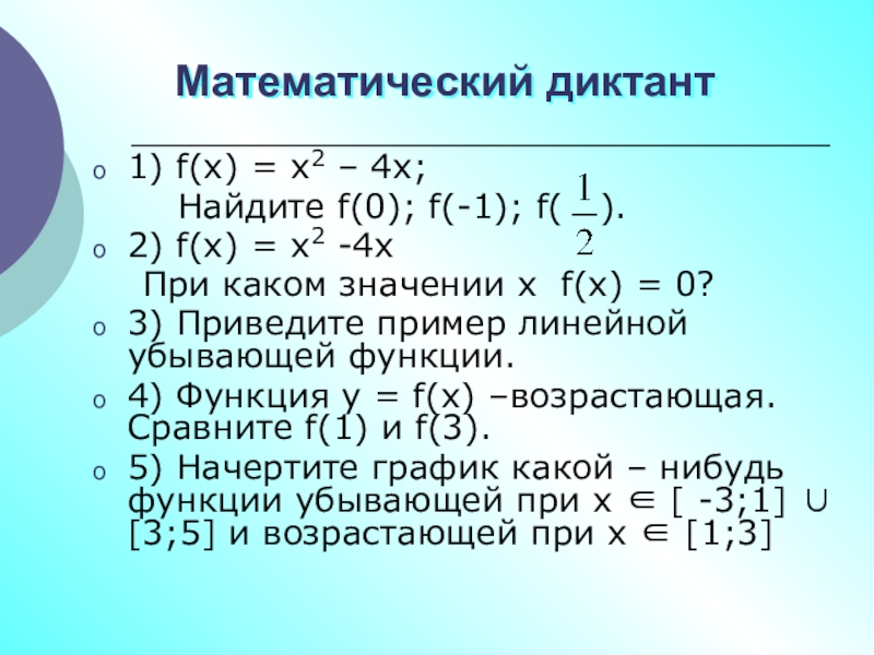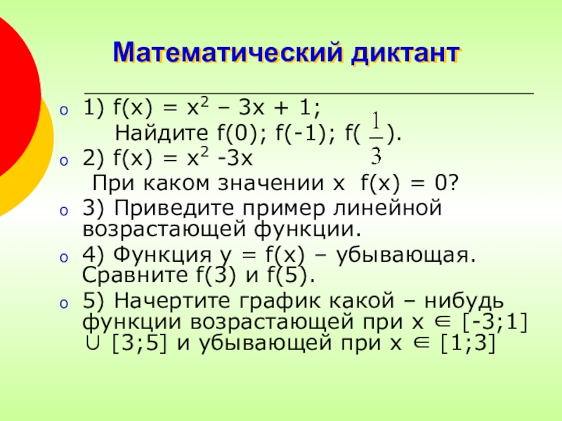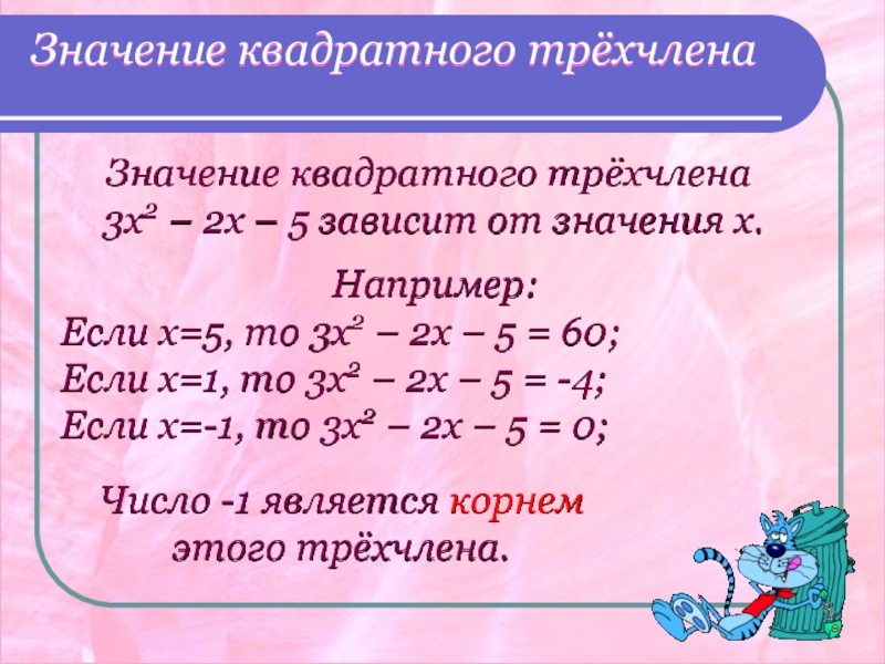 Если x=1, то 3x2 – 2x – 5 = -4;