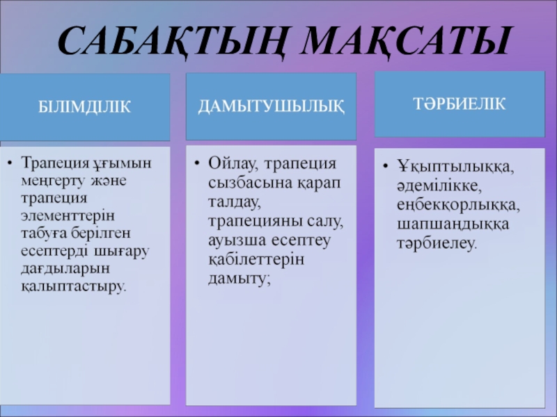 САБАҚТЫҢ ТАҚЫРЫБЫ: ТРАПЕЦИЯ ЖӘНЕ ОНЫҢ ҚАСИЕТТЕРІ