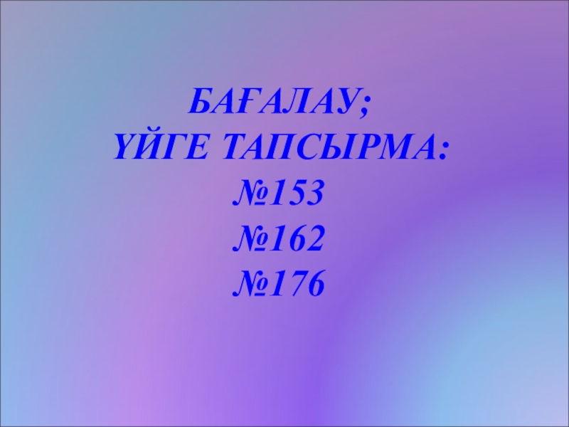 БАҒАЛАУ;ҮЙГЕ ТАПСЫРМА:№153№162№176