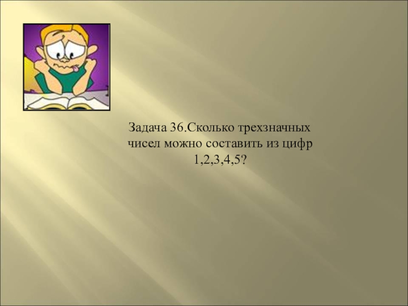 Слайд 237Задача 36.Сколько трехзначных чисел можно составить из цифр 1,2,3,4,5?