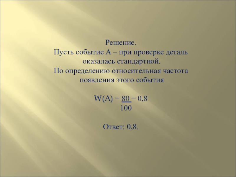 Если взять 1 деталь, то событие А – деталь стандартная и