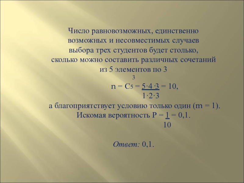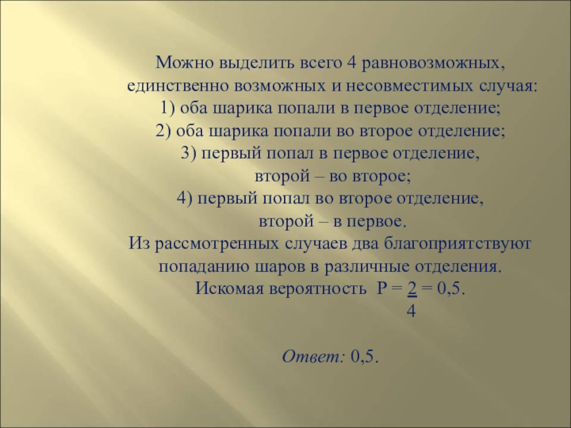 Эти случаи несовместимы, единственно возможны и равновозможны.