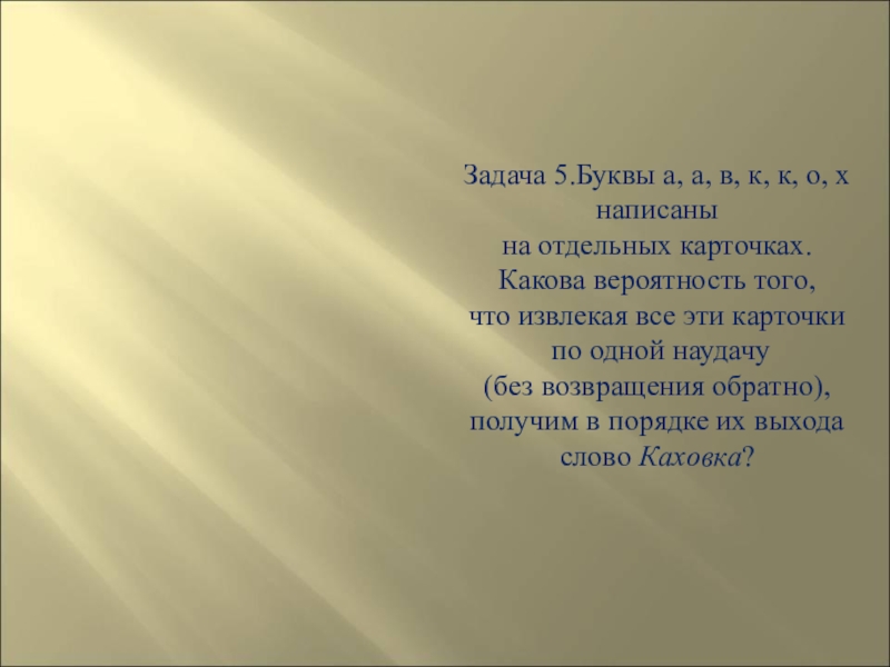 Слайд 10Задача 5.Буквы а, а, в, к, к, о, х написаны