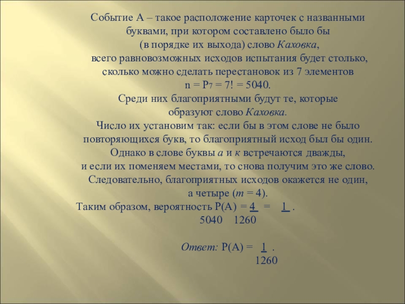Слайд 11Событие А – такое расположение карточек с названными буквами, при котором