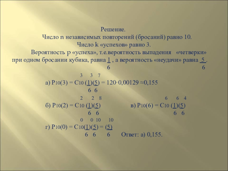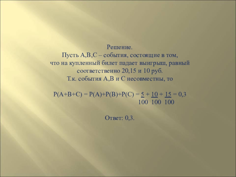 Ответ: Р(А) = 1 ; Р(В) = 1 ; Р(С) = 5 .