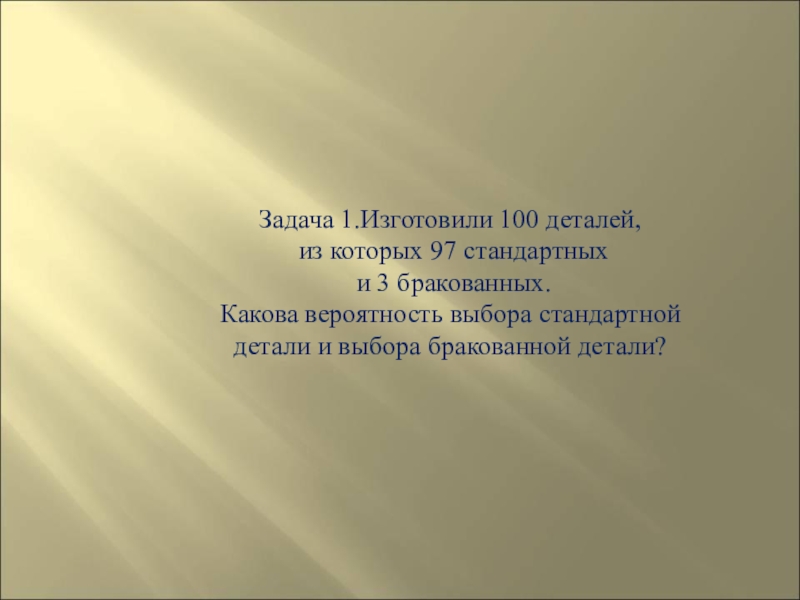 Слайд 2Задача 1.Изготовили 100 деталей,