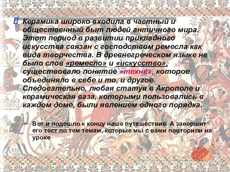 Слайд 6 Керамика была спутницей всей жизни античного человека. Когда он