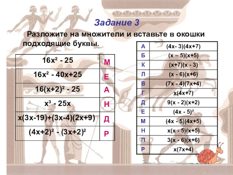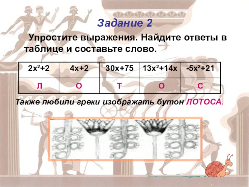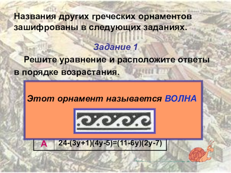 Слайд 14Названия других греческих орнаментов зашифрованы в следующих заданиях.