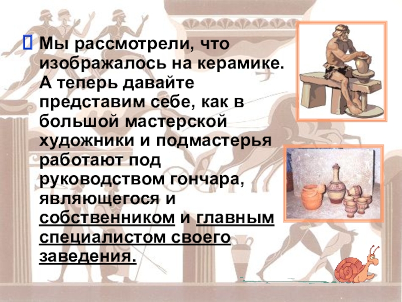 Слайд 18Мы рассмотрели, что изображалось на керамике. А теперь давайте представим себе,