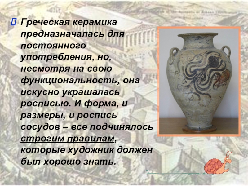 Слайд 11Греческая керамика предназначалась для постоянного употребления, но, несмотря на свою функциональность,