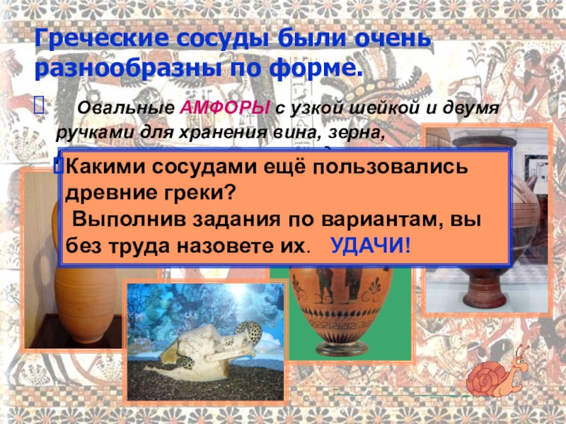 Слайд 7Греческие сосуды были очень разнообразны по форме.