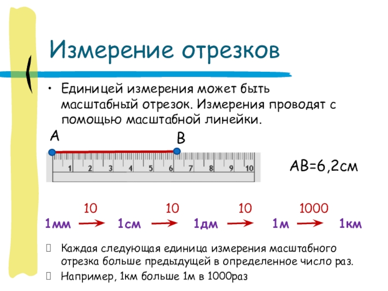 Каждая следующая единица измерения масштабного отрезка больше предыдущей в определенное число раз.