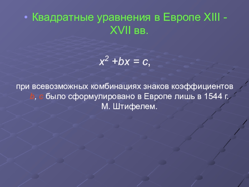 Слайд 6Квадратные уравнения в Европе ХIII - ХVII вв.