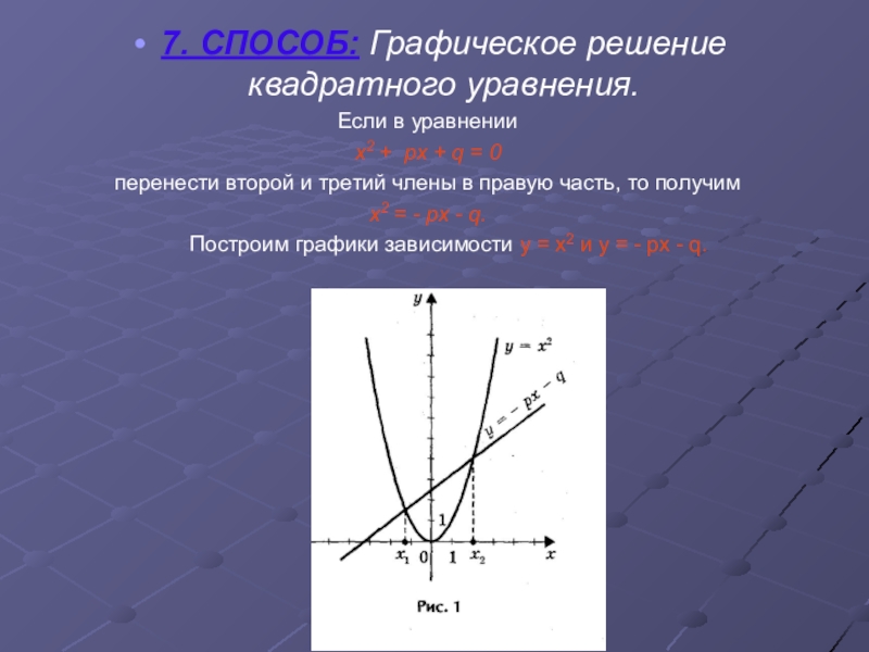 Слайд 167. СПОСОБ: Графическое решение квадратного уравнения.