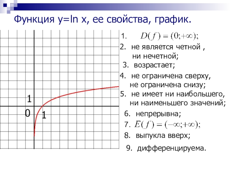 Функция y=ln x, ее свойства, график.
