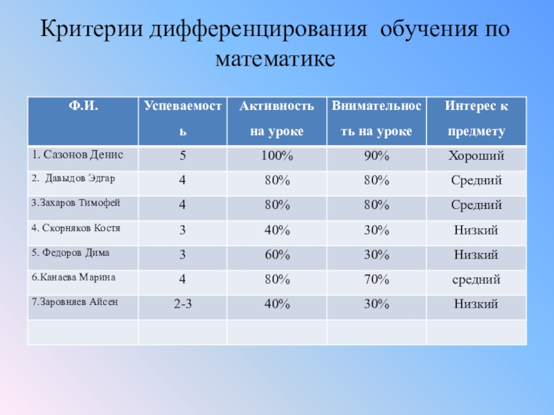 В результате проделанной работы можно сделать следующие выводы: Дифференцированное обучение –