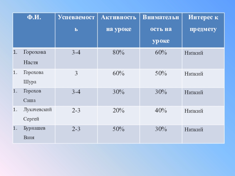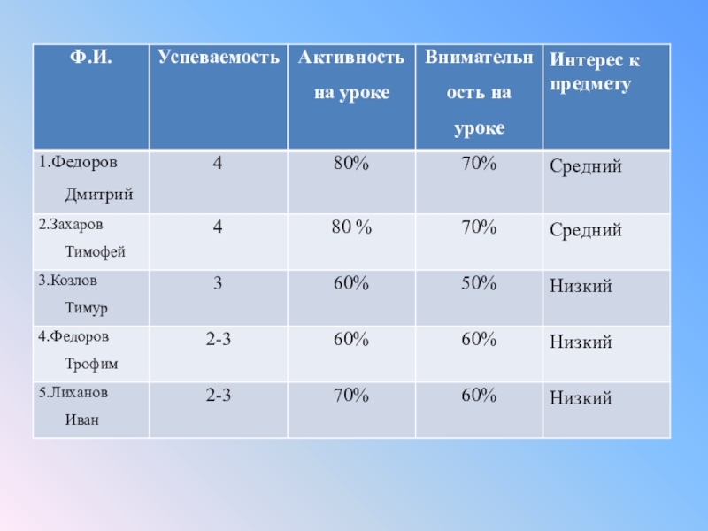 изучение индивидуальных особенностей и учебных возможностей учащихся;
