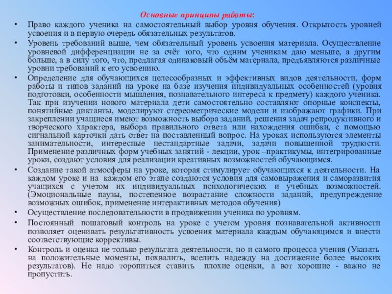 обучение, основанное на уровневой дифференциации, не является целью, это средство развития личностных особенностей как индивидуальности;