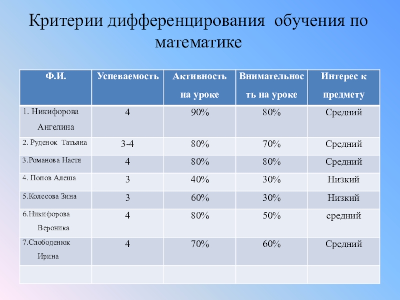 В результате проделанной работы можно сделать следующие выводы: Дифференцированное обучение –