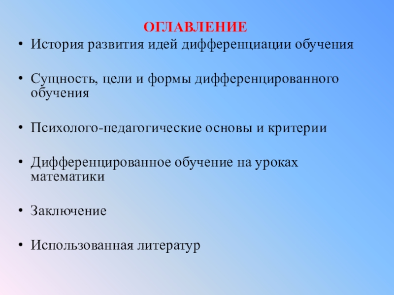 определить психолого-педагогические основы и критерии дифференцированного обучения;