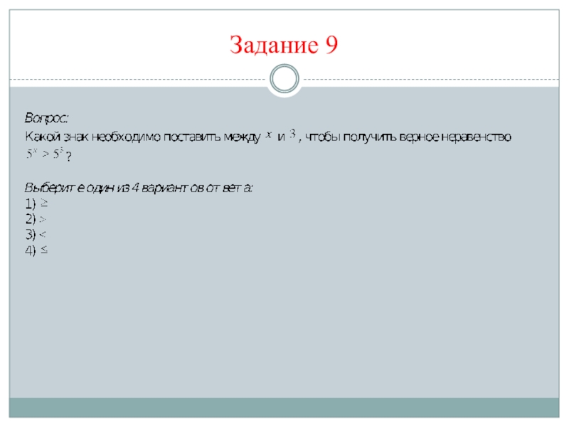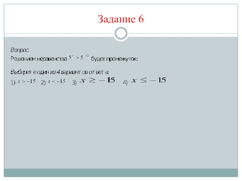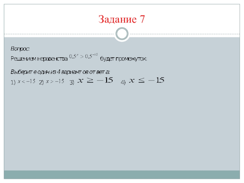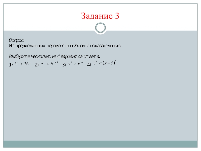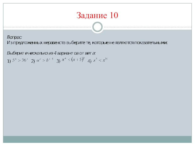 Презентация, доклад на тему Диктант по алгебре и началам математического анализа Показательные неравенства (10 класс)