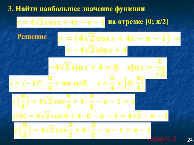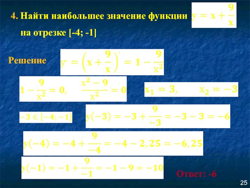 Числовые функции и их свойства. Производная функции. Исследование функции с помощью производной.