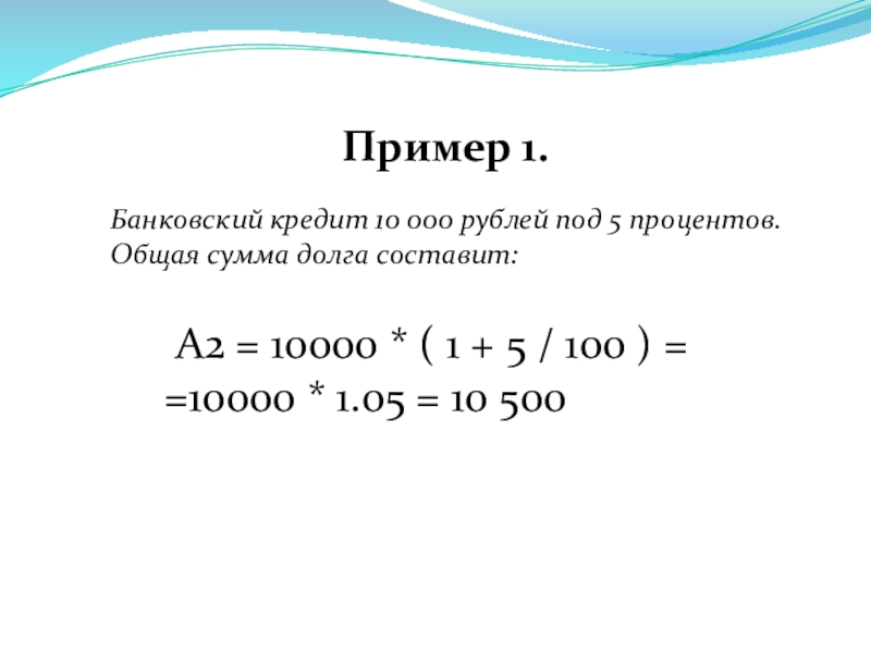 А2 = 10000 * ( 1 + 5 / 100 ) = =10000 * 1.05 = 10 500