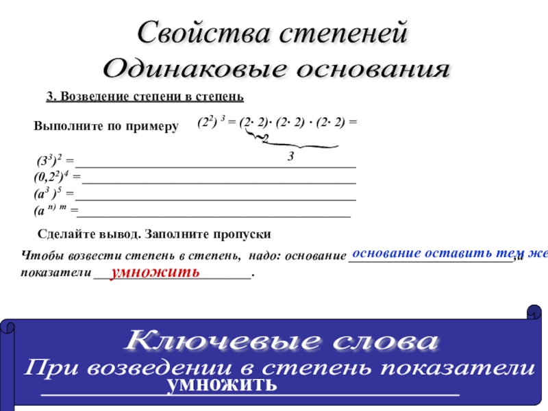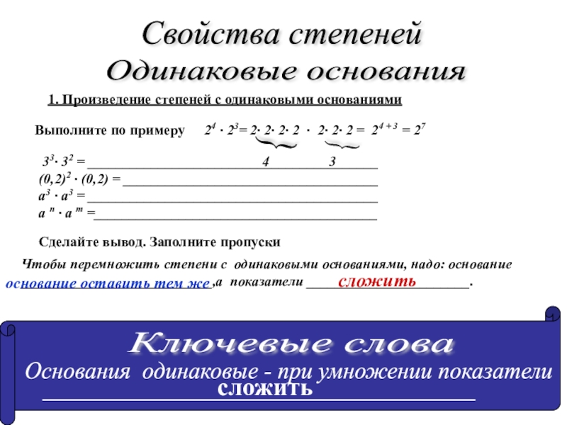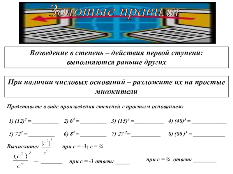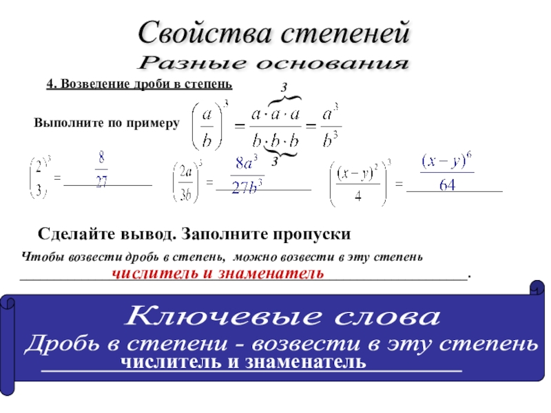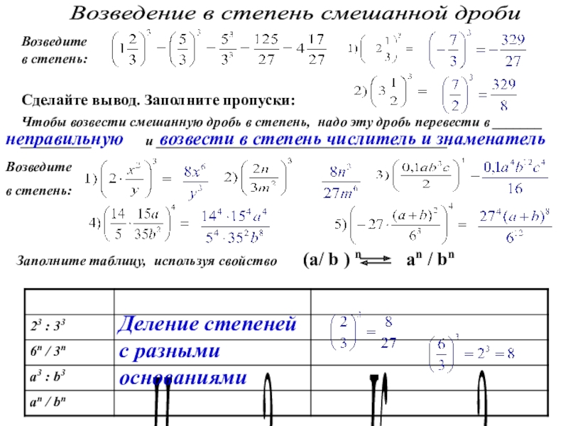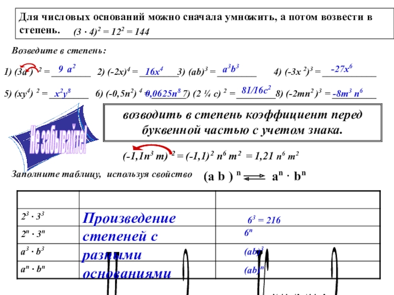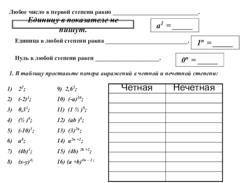 При других показателях, например, х5, 56, (a + b)4, говорят икс в пятой степени, пять в шестой степени, а плюс b в четвертой степени.