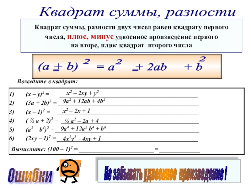 Если n = 2, например, х2, 52, (a + b)2, то говорят икс в квадрате, пять в квадрате, а плюс b в квадрате.