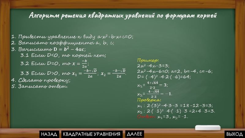 2x2-4х-6=0; а=2, b=-4, с=-6;