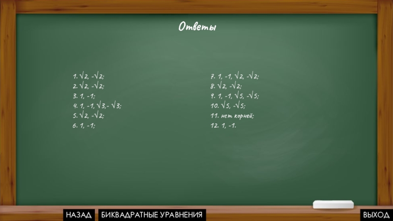 БИКВАДРАТНЫЕ УРАВНЕНИЯ