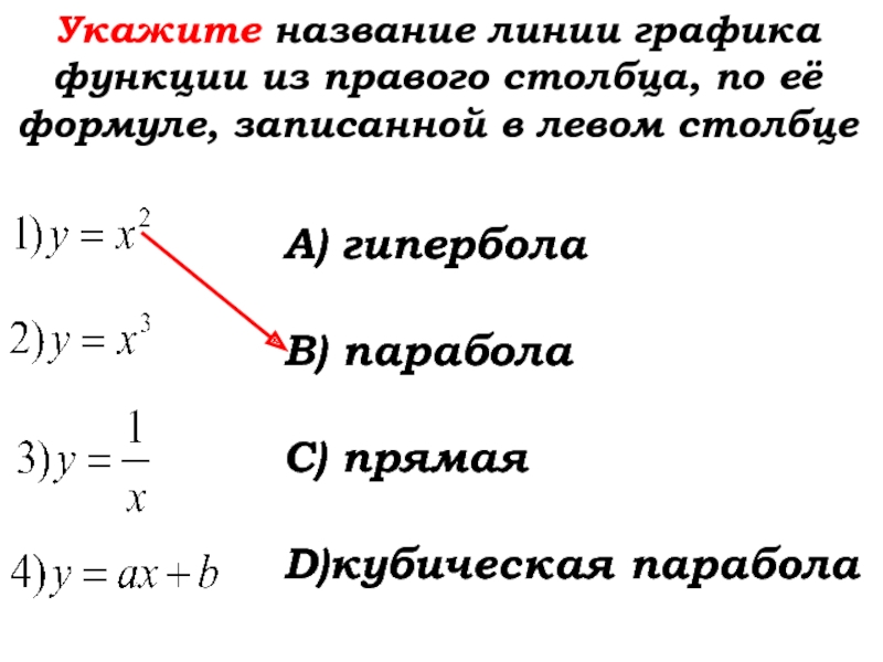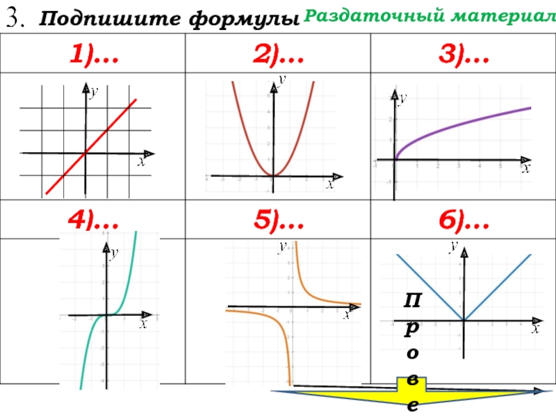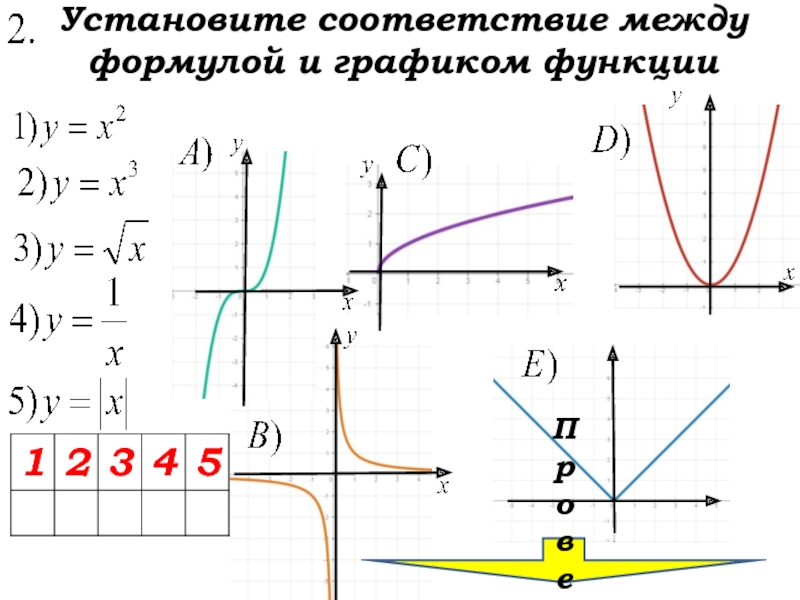 2.Уметь устанавливать соответствии между формулами простейших функций и названиями их графиков.