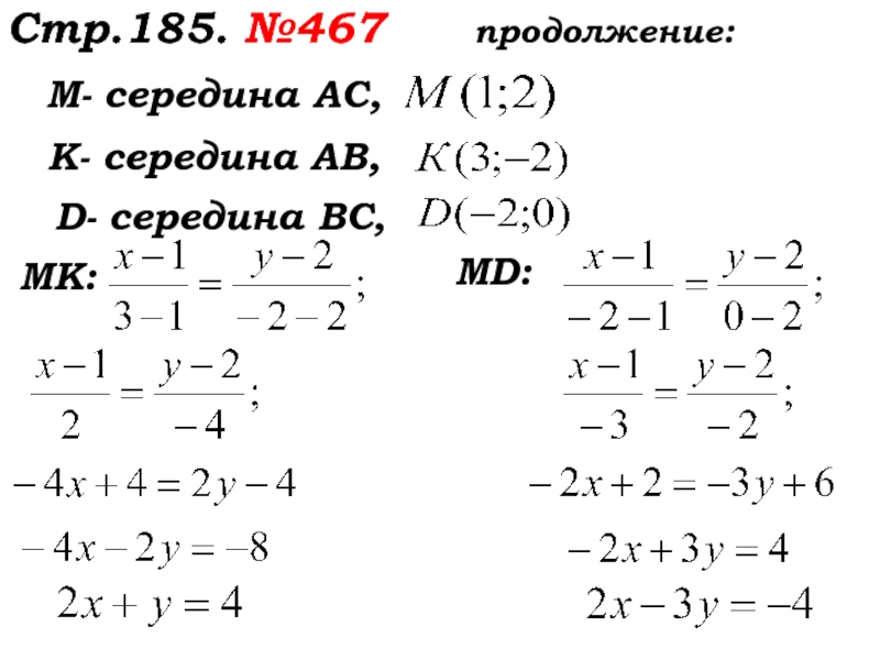 А и В, то их координаты удовлетворяют уравнению прямой: