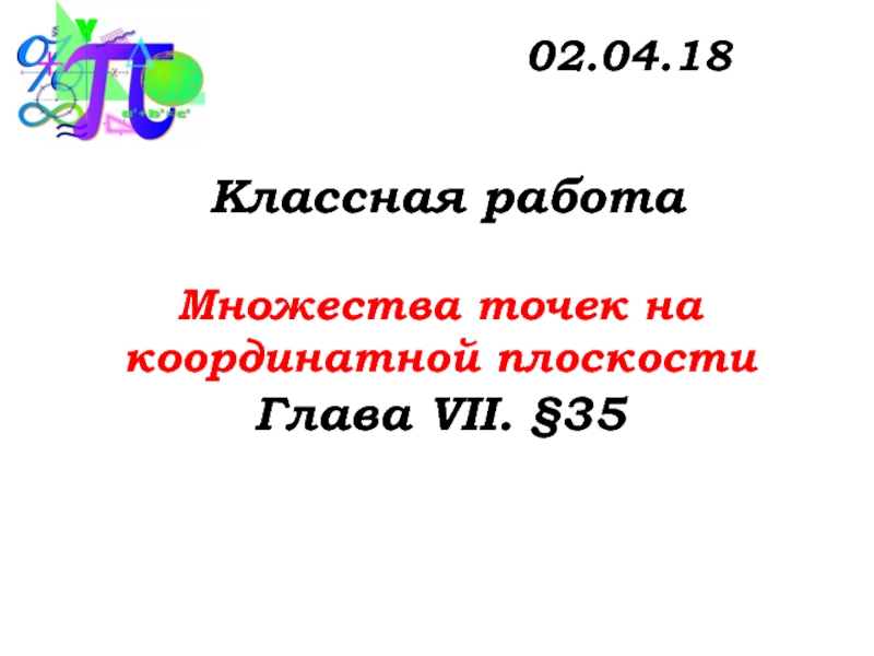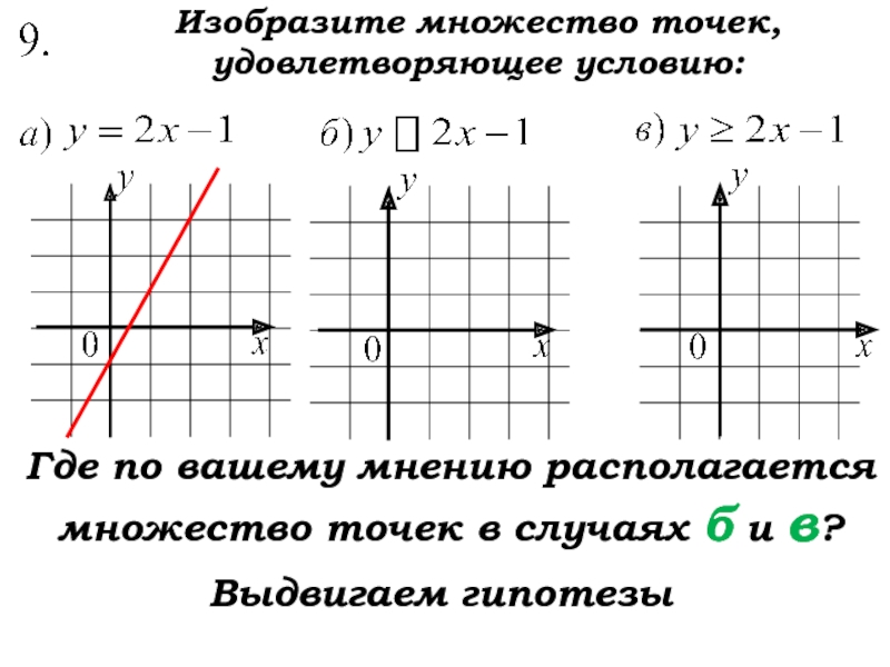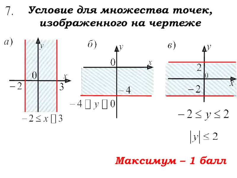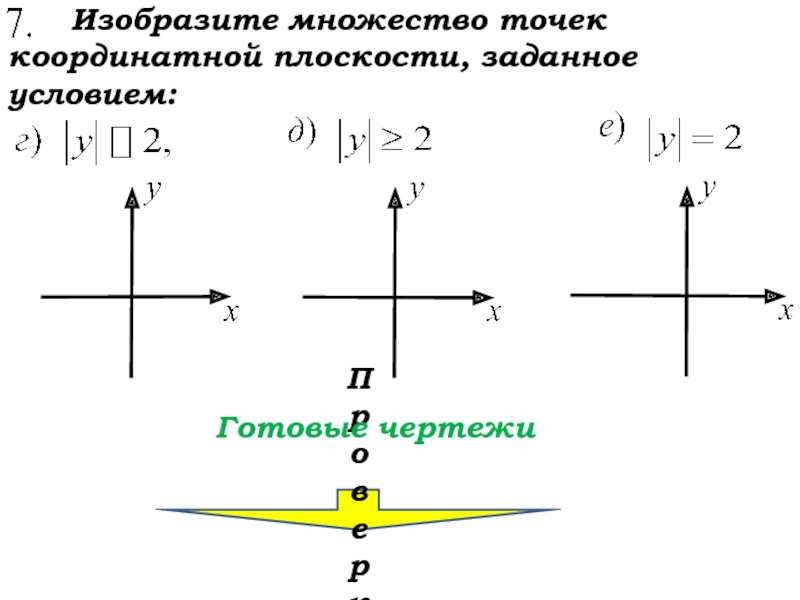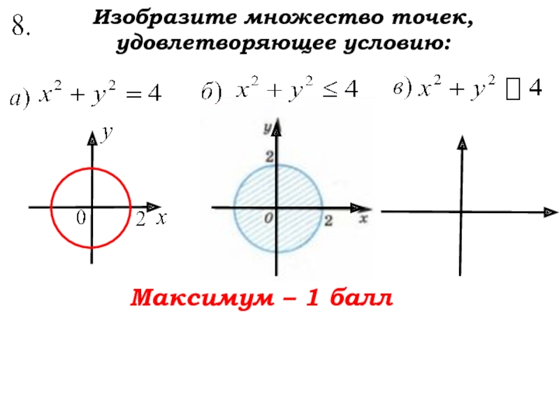координатной плоскости может быть в виде: отдельных точек, одной прямой, параллельных прямых, пересекающихся прямых, окружности, круга, множества точек вне круга, полуплоскости с границей и без границы, полосы с границами и без границ, части плоскости, полученными разделением плоскости графиками функций.