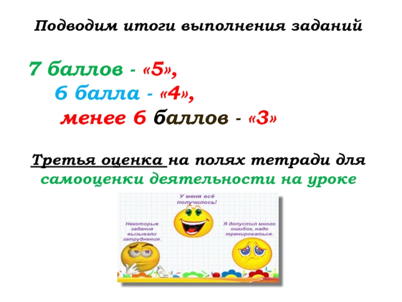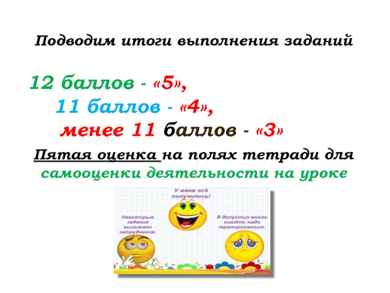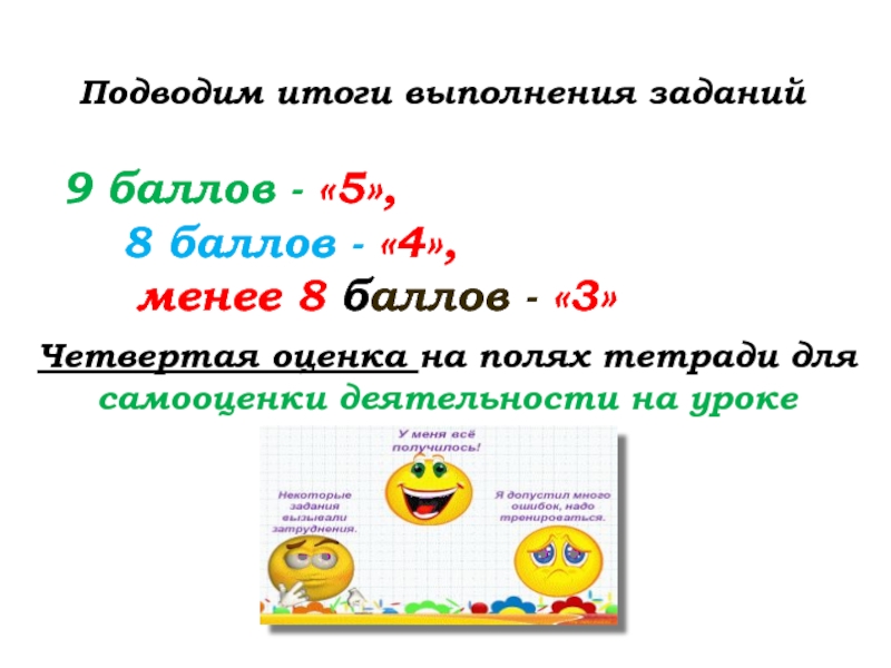 Слайд 18Оцените понимание и уровень выполнения вами ДЗ.