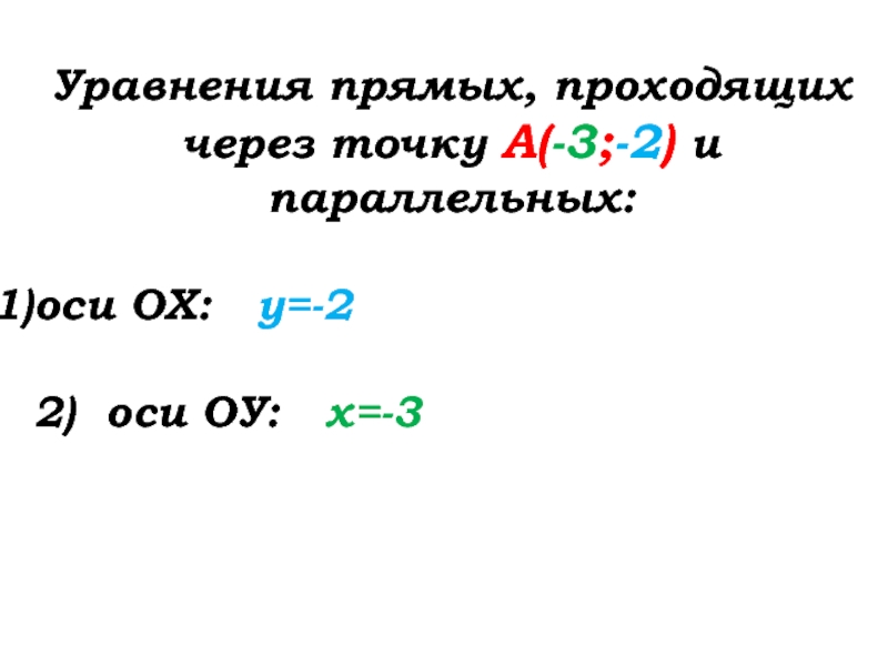 Назовите уравнения прямых, проходящих через точку А(-3;-2) и параллельных: