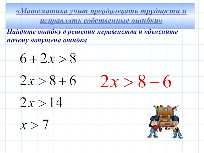 Найдите ошибку в решении неравенства и объясните почему допущена ошибка